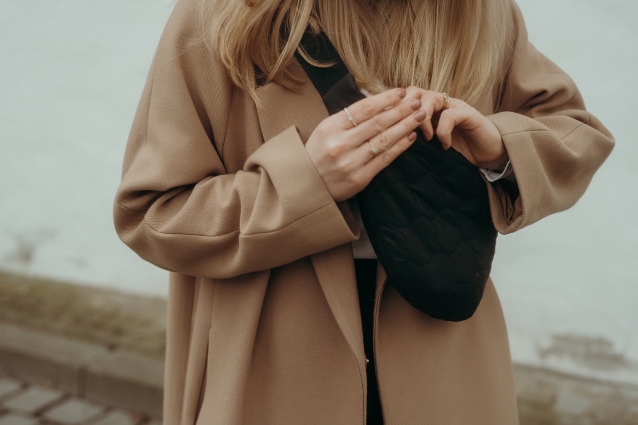 Du hast deine Hände frei für einen warmen Kaffee oder Tee und deine Crossbody Bag immer direkt griffbereit.